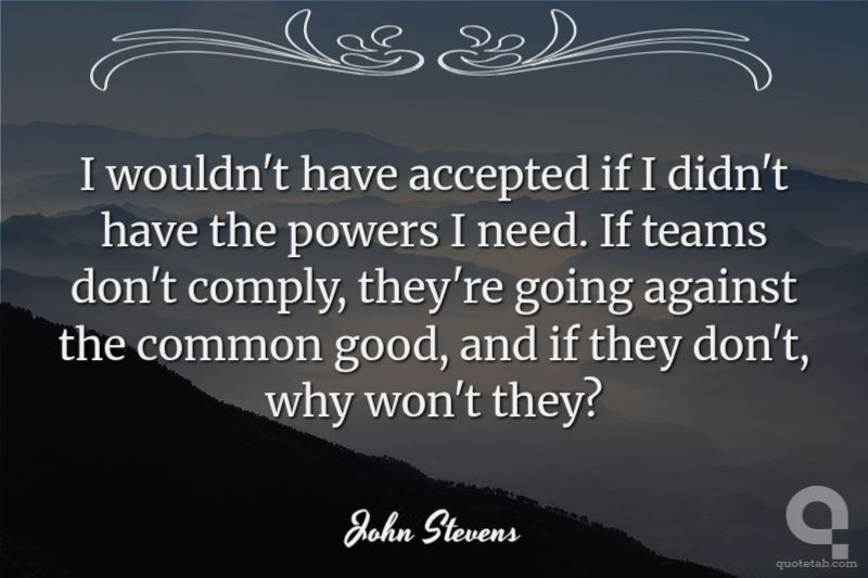 I wouldn't have accepted if I didn't have the powers I need. If teams don't comply, they're going against the common good, and if they don't, why won't they?
