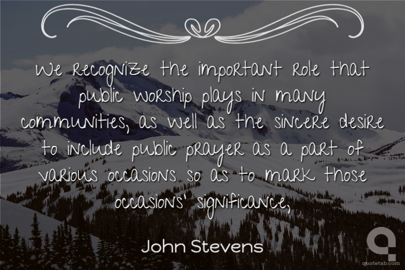 We recognize the important role that public worship plays in many communities, as well as the sincere desire to include public prayer as a part of various occasions so as to mark those occasions' significance,