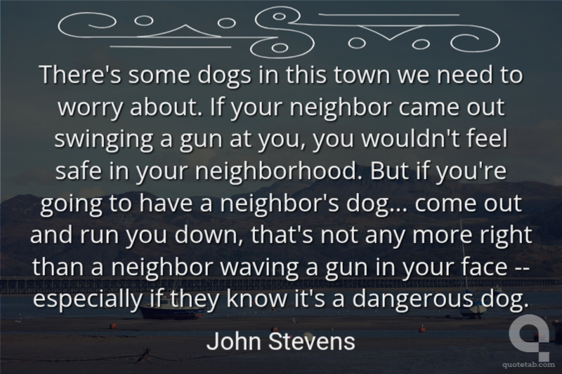There's some dogs in this town we need to worry about. If your neighbor came out swinging a gun at you, you wouldn't feel safe in your neighborhood. But if you're going to have a neighbor's dog... come out and run you down, that's not any more right than a neighbor waving a gun in your face -- especially if they know it's a dangerous dog.