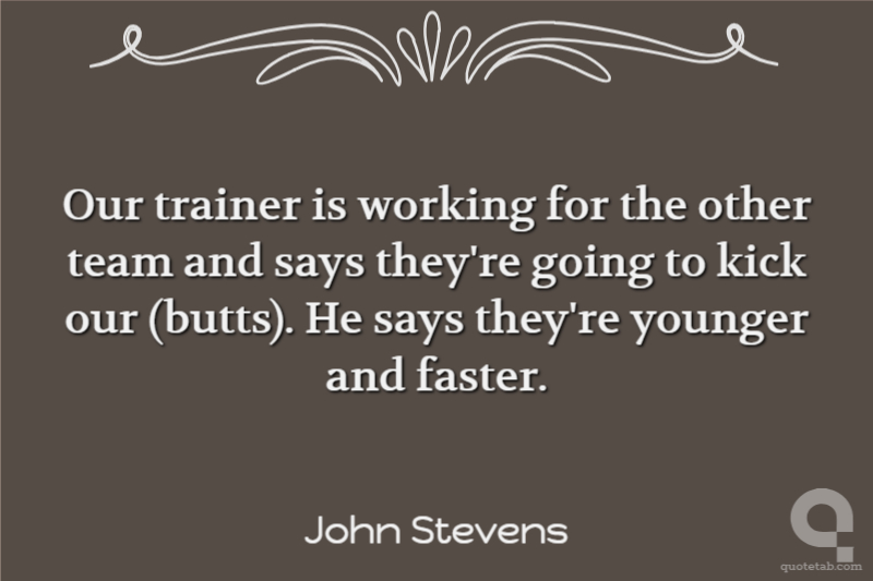 Our trainer is working for the other team and says they're going to kick our (butts). He says they're younger and faster.