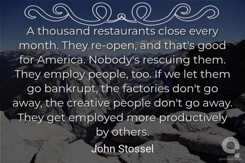 A thousand restaurants close every month. They re-open, and that's good for America. Nobody's rescuing them. They employ people, too. If we let them go bankrupt, the factories don't go away, the creative people don't go away. They get employed more productively by others.