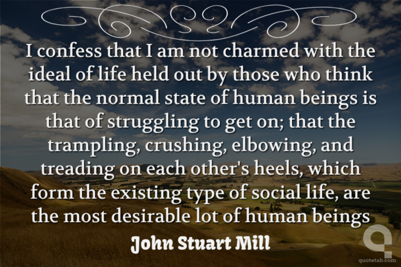 I confess that I am not charmed with the ideal of life held out by those who think that the normal state of human beings is that of struggling to get on; that the trampling, crushing, elbowing, and treading on each other's heels, which form the existing type of social life, are the most desirable lot of human beings