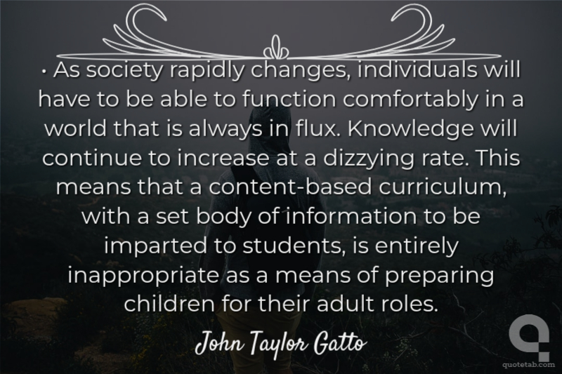 • As society rapidly changes, individuals will have to be able to function comfortably in a world that is always in flux. Knowledge will continue to increase at a dizzying rate. This means that a content-based curriculum, with a set body of information to be imparted to students, is entirely inappropriate as a means of preparing children for their adult roles.