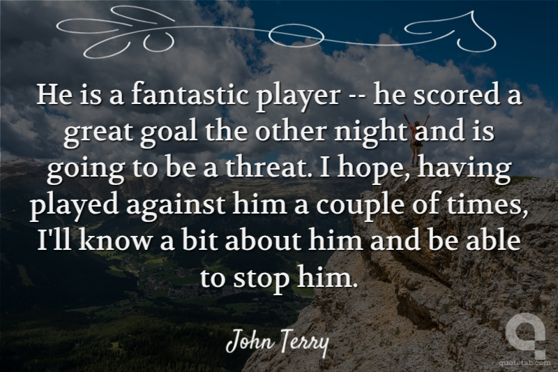 He is a fantastic player -- he scored a great goal the other night and is going to be a threat. I hope, having played against him a couple of times, I'll know a bit about him and be able to stop him.