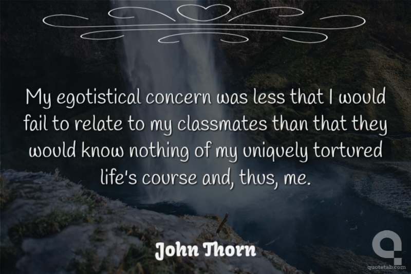 My egotistical concern was less that I would fail to relate to my classmates than that they would know nothing of my uniquely tortured life's course and, thus, me.
