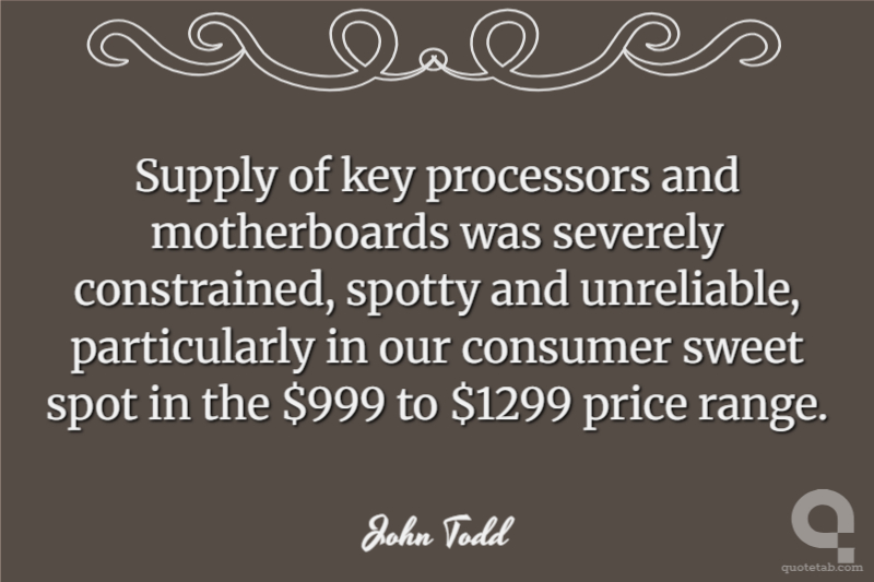 Supply of key processors and motherboards was severely constrained, spotty and unreliable, particularly in our consumer sweet spot in the $999 to $1299 price range.