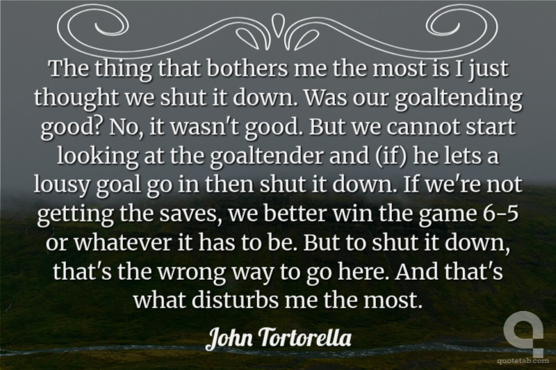 The thing that bothers me the most is I just thought we shut it down. Was our goaltending good? No, it wasn't good. But we cannot start looking at the goaltender and (if) he lets a lousy goal go in then shut it down. If we're not getting the saves, we better win the game 6-5 or whatever it has to be. But to shut it down, that's the wrong way to go here. And that's what disturbs me the most.