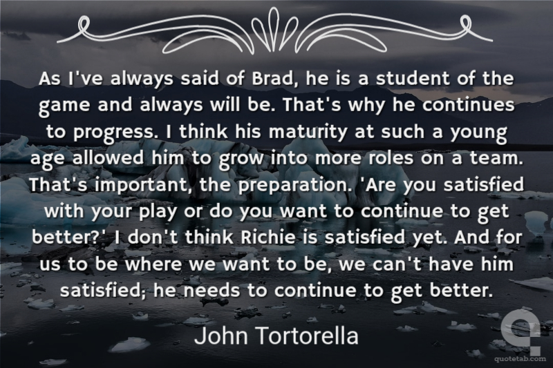 As I've always said of Brad, he is a student of the game and always will be. That's why he continues to progress. I think his maturity at such a young age allowed him to grow into more roles on a team. That's important, the preparation. 'Are you satisfied with your play or do you want to continue to get better?' I don't think Richie is satisfied yet. And for us to be where we want to be, we can't have him satisfied; he needs to continue to get better.