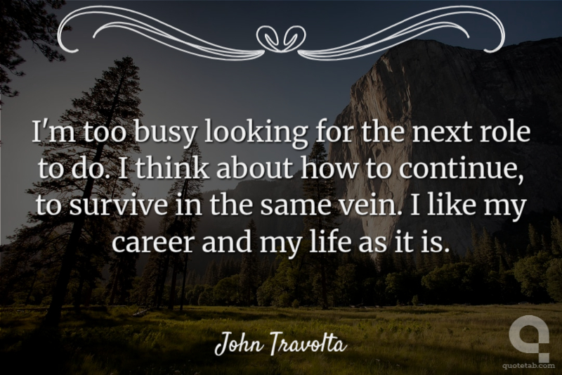 I'm too busy looking for the next role to do. I think about how to continue, to survive in the same vein. I like my career and my life as it is.
