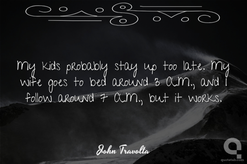 My kids probably stay up too late. My wife goes to bed around 3 A.M., and I follow around 7 A.M., but it works.