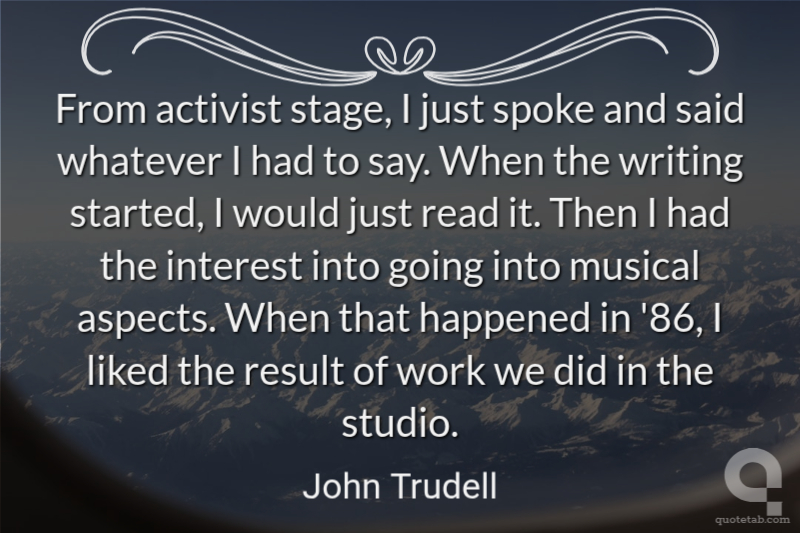 From activist stage, I just spoke and said whatever I had to say. When the writing started, I would just read it. Then I had the interest into going into musical aspects. When that happened in '86, I liked the result of work we did in the studio.