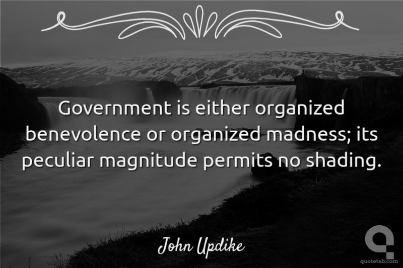 Government is either organized benevolence or organized madness; its peculiar magnitude permits no shading.