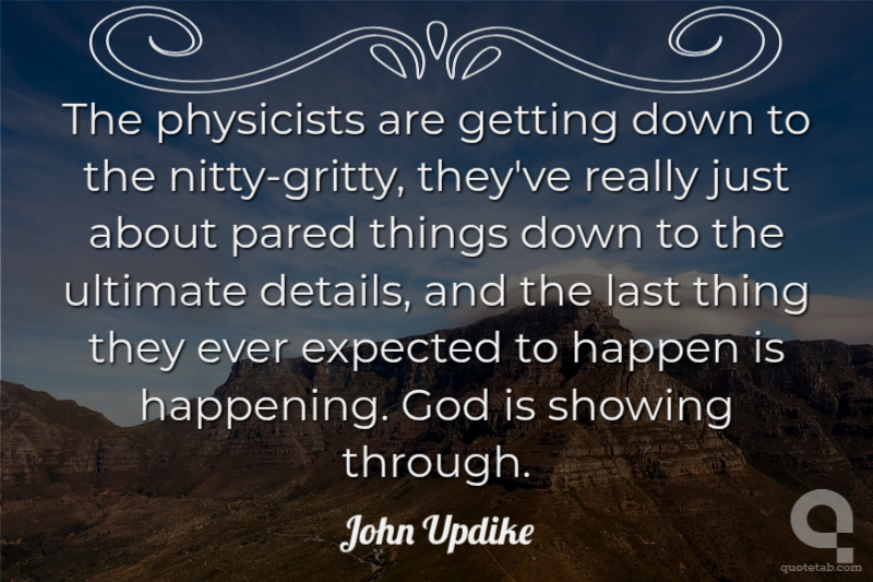 The physicists are getting down to the nitty-gritty, they've really just about pared things down to the ultimate details, and the last thing they ever expected to happen is happening. God is showing through.