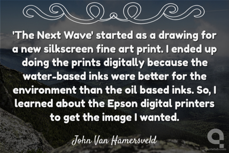 'The Next Wave' started as a drawing for a new silkscreen fine art print. I ended up doing the prints digitally because the water-based inks were better for the environment than the oil based inks. So, I learned about the Epson digital printers to get the image I wanted.