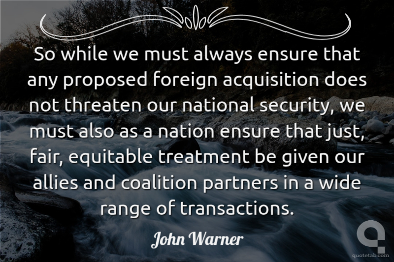 So while we must always ensure that any proposed foreign acquisition does not threaten our national security, we must also as a nation ensure that just, fair, equitable treatment be given our allies and coalition partners in a wide range of transactions.