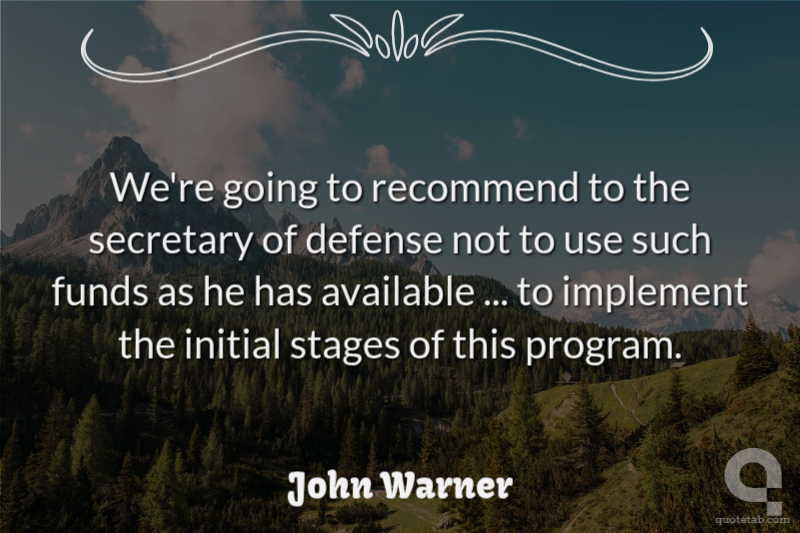 We're going to recommend to the secretary of defense not to use such funds as he has available ... to implement the initial stages of this program.