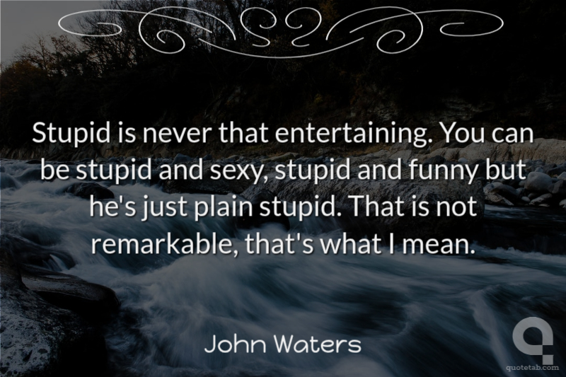 Stupid is never that entertaining. You can be stupid and sexy, stupid and funny but he's just plain stupid. That is not remarkable, that's what I mean.