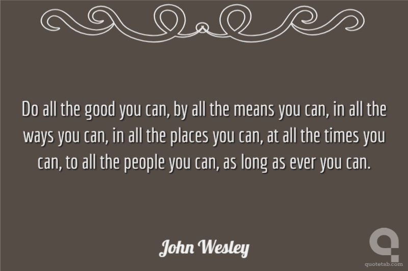 Do all the good you can, by all the means you can, in all the ways you can, in all the places you can, at all the times you can, to all the people you can, as long as ever you can.