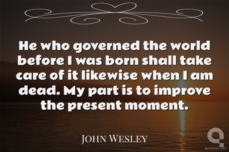 He who governed the world before I was born shall take care of it likewise when I am dead. My part is to improve the present moment.