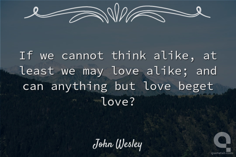 Though we cannot think alike, may we not love alike? May we not be of one heart, though we are not of one opinion? Without all doubt, we may. Herein all the children of God may unite, notwithstanding these smaller differences.