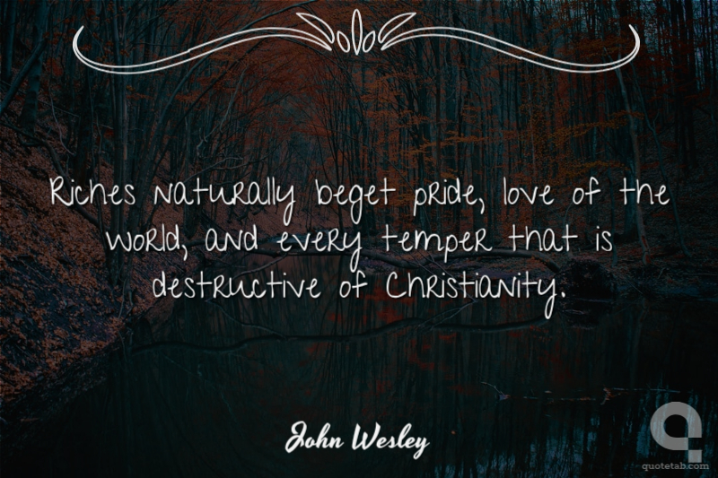 Riches naturally beget pride, love of the world, and every temper that is destructive of Christianity.