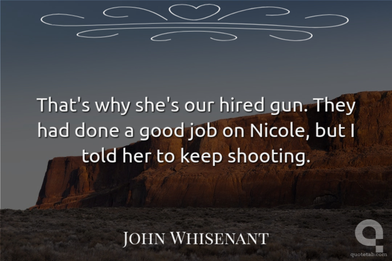 That's why she's our hired gun. They had done a good job on Nicole, but I told her to keep shooting.