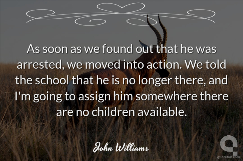 As soon as we found out that he was arrested, we moved into action. We told the school that he is no longer there, and I'm going to assign him somewhere there are no children available.