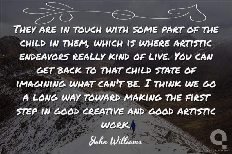 They are in touch with some part of the child in them, which is where artistic endeavors really kind of live. You can get back to that child state of imagining what can't be. I think we go a long way toward making the first step in good creative and good artistic work.