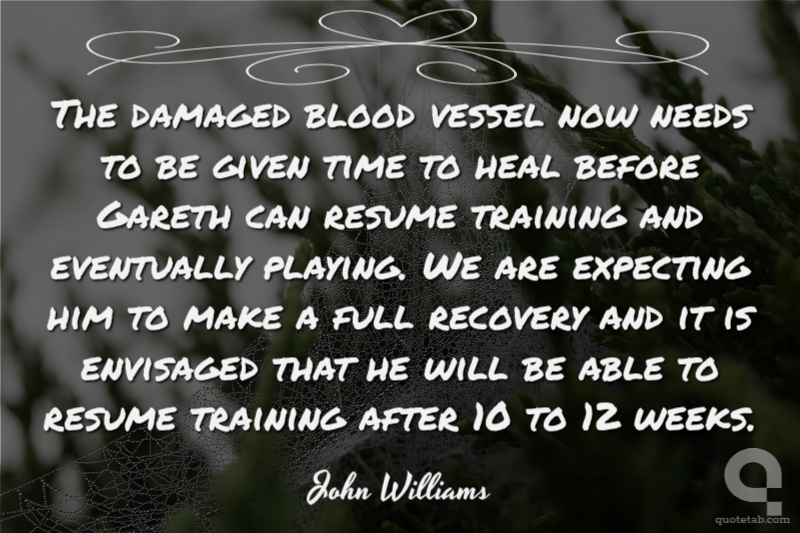 The damaged blood vessel now needs to be given time to heal before Gareth can resume training and eventually playing. We are expecting him to make a full recovery and it is envisaged that he will be able to resume training after 10 to 12 weeks.