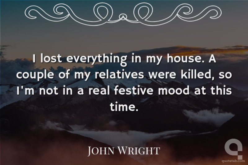 I lost everything in my house. A couple of my relatives were killed, so I'm not in a real festive mood at this time.