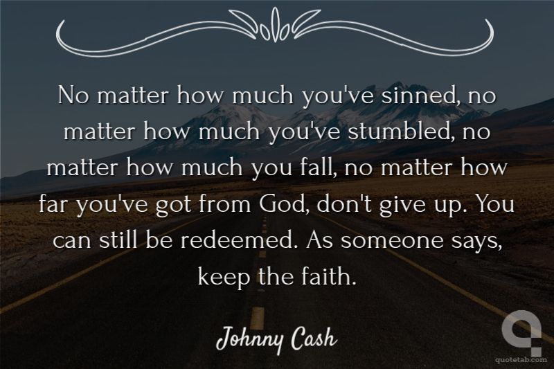 No matter how much you've sinned, no matter how much you've stumbled, no matter how much you fall, no matter how far you've got from God, don't give up. You can still be redeemed. As someone says, keep the faith.