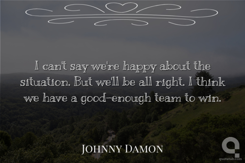 I can't say we're happy about the situation. But we'll be all right. I think we have a good-enough team to win.