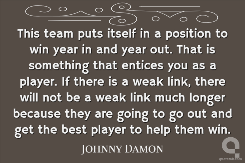 This team puts itself in a position to win year in and year out. That is something that entices you as a player. If there is a weak link, there will not be a weak link much longer because they are going to go out and get the best player to help them win.