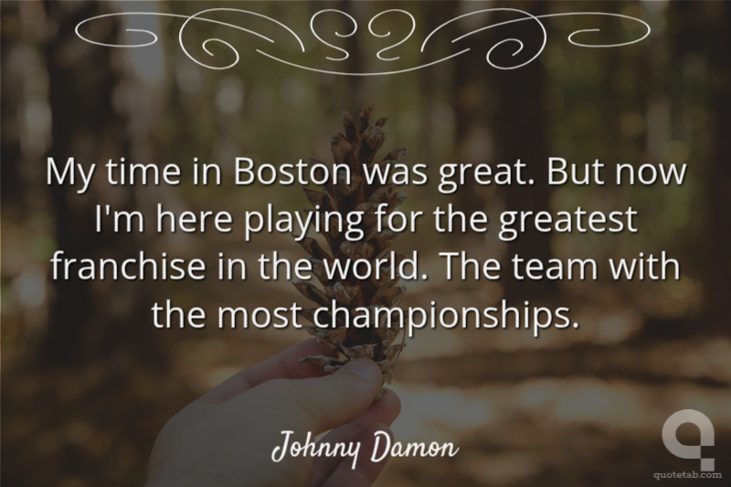 My time in Boston was great. But now I'm here playing for the greatest franchise in the world. The team with the most championships.