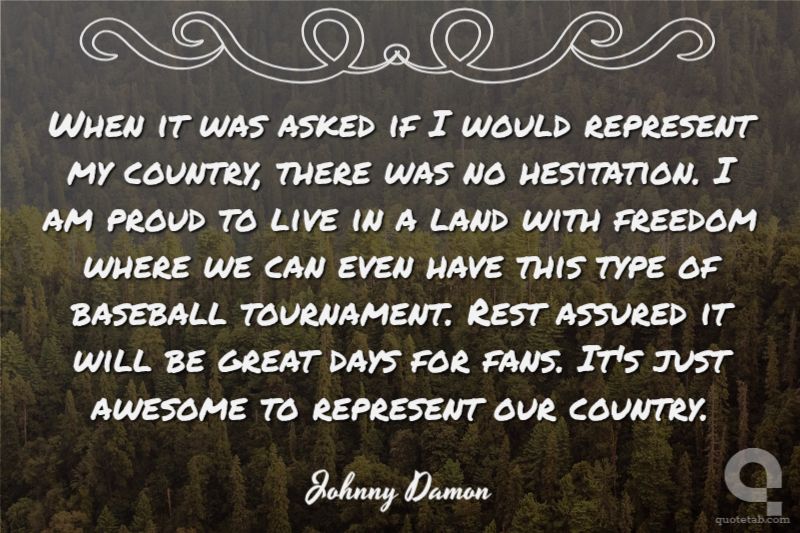 When it was asked if I would represent my country, there was no hesitation. I am proud to live in a land with freedom where we can even have this type of baseball tournament. Rest assured it will be great days for fans. It's just awesome to represent our country.