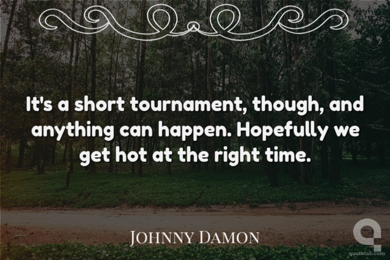 It's a short tournament, though, and anything can happen. Hopefully we get hot at the right time.