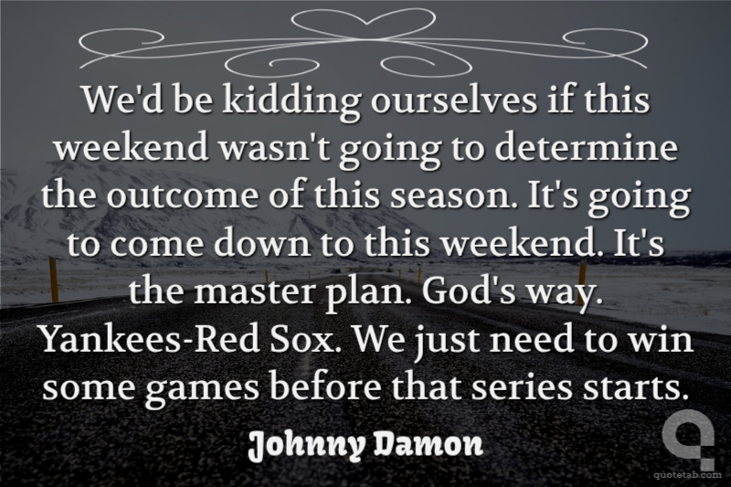 We'd be kidding ourselves if this weekend wasn't going to determine the outcome of this season. It's going to come down to this weekend. It's the master plan. God's way. Yankees-Red Sox. We just need to win some games before that series starts.