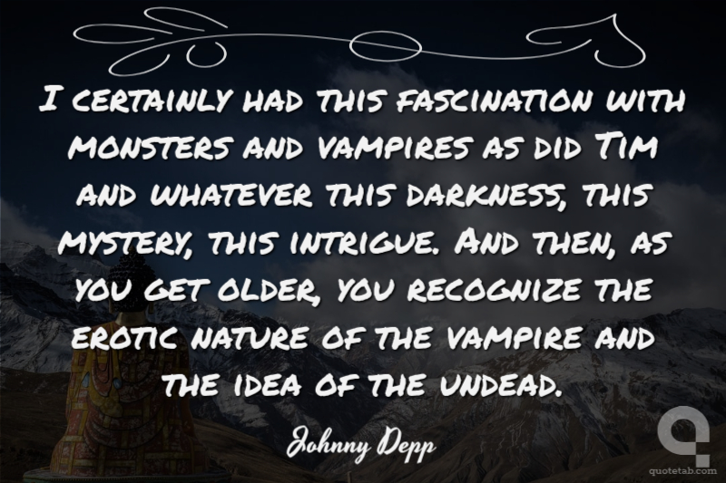 I certainly had this fascination with monsters and vampires as did Tim and whatever this darkness, this mystery, this intrigue. And then, as you get older, you recognize the erotic nature of the vampire and the idea of the undead.