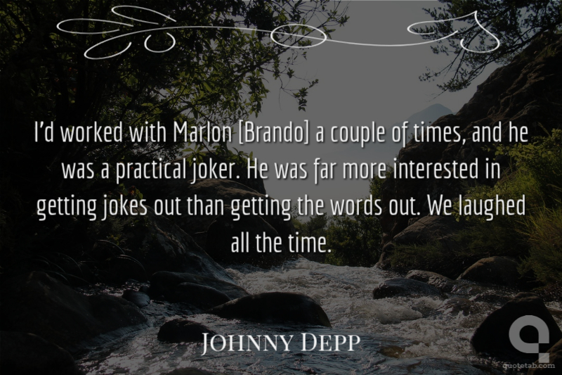 I'd worked with Marlon [Brando] a couple of times, and he was a practical joker. He was far more interested in getting jokes out than getting the words out. We laughed all the time.