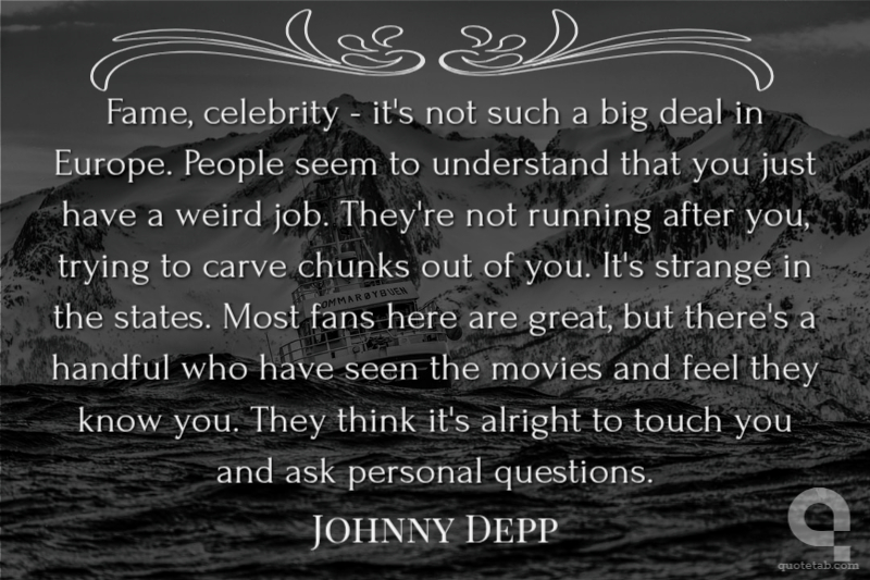 Fame, celebrity - it's not such a big deal in Europe. People seem to understand that you just have a weird job. They're not running after you, trying to carve chunks out of you. It's strange in the states. Most fans here are great, but there's a handful who have seen the movies and feel they know you. They think it's alright to touch you and ask personal questions.