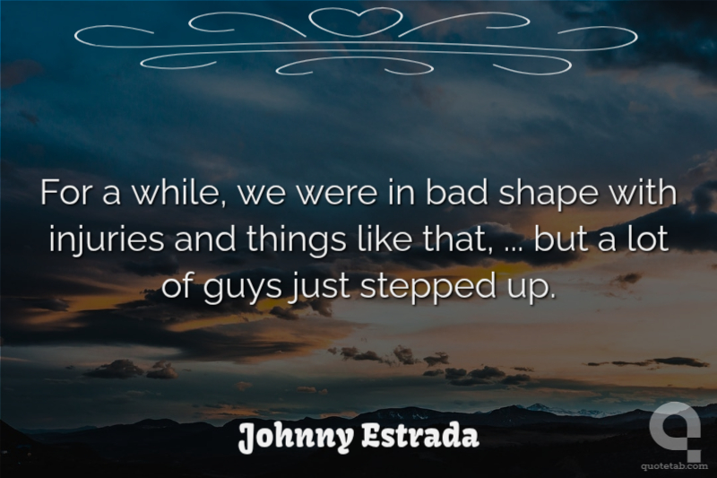 For a while, we were in bad shape with injuries and things like that, ... but a lot of guys just stepped up.