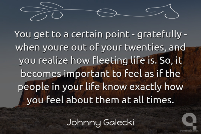 You get to a certain point - gratefully - when youre out of your twenties, and you realize how fleeting life is. So, it becomes important to feel as if the people in your life know exactly how you feel about them at all times.