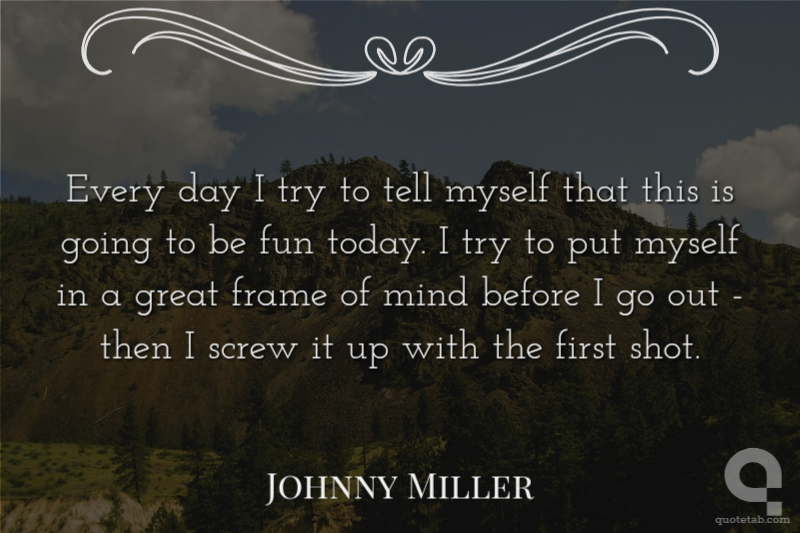 Every day I try to tell myself that this is going to be fun today. I try to put myself in a great frame of mind before I go out - then I screw it up with the first shot.