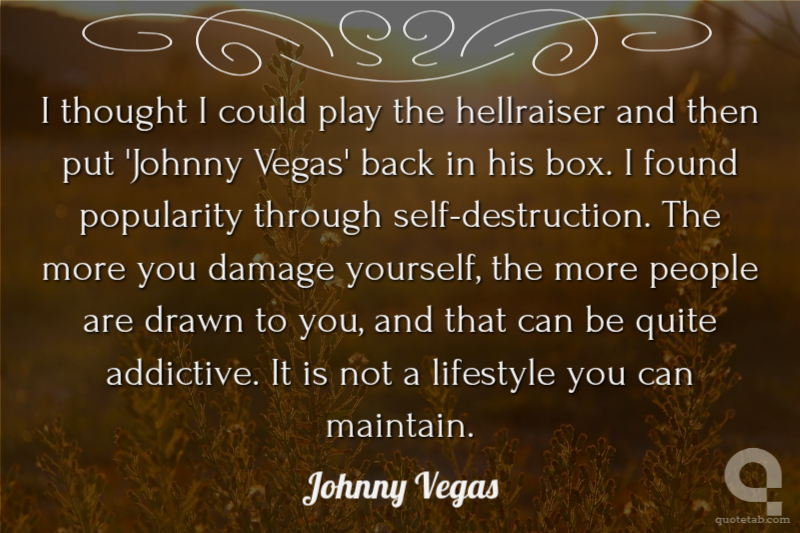 I thought I could play the hellraiser and then put 'Johnny Vegas' back in his box. I found popularity through self-destruction. The more you damage yourself, the more people are drawn to you, and that can be quite addictive. It is not a lifestyle you can maintain.