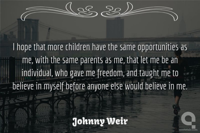 I hope that more children have the same opportunities as me, with the same parents as me, that let me be an individual, who gave me freedom, and taught me to believe in myself before anyone else would believe in me.