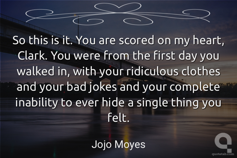 So this is it. You are scored on my heart, Clark. You were from the first day you walked in, with your ridiculous clothes and your bad jokes and your complete inability to ever hide a single thing you felt.
