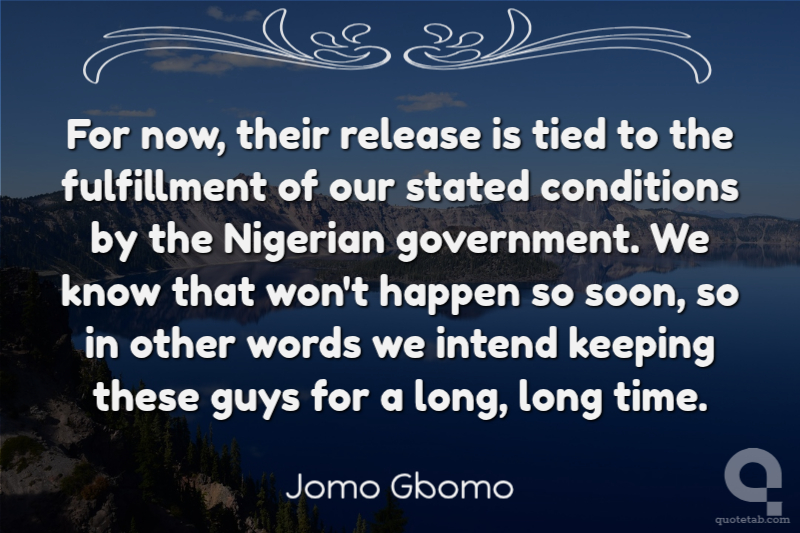 For now, their release is tied to the fulfillment of our stated conditions by the Nigerian government. We know that won't happen so soon, so in other words we intend keeping these guys for a long, long time.