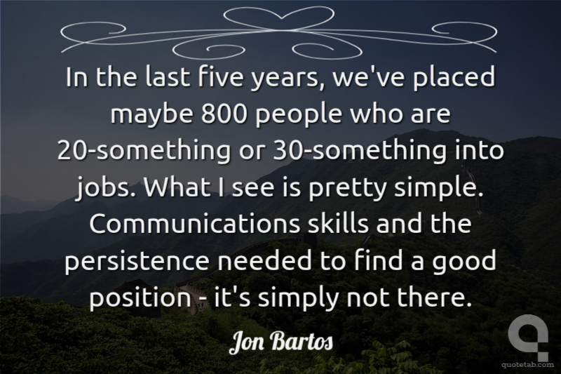 In the last five years, we've placed maybe 800 people who are 20-something or 30-something into jobs. What I see is pretty simple. Communications skills and the persistence needed to find a good position - it's simply not there.