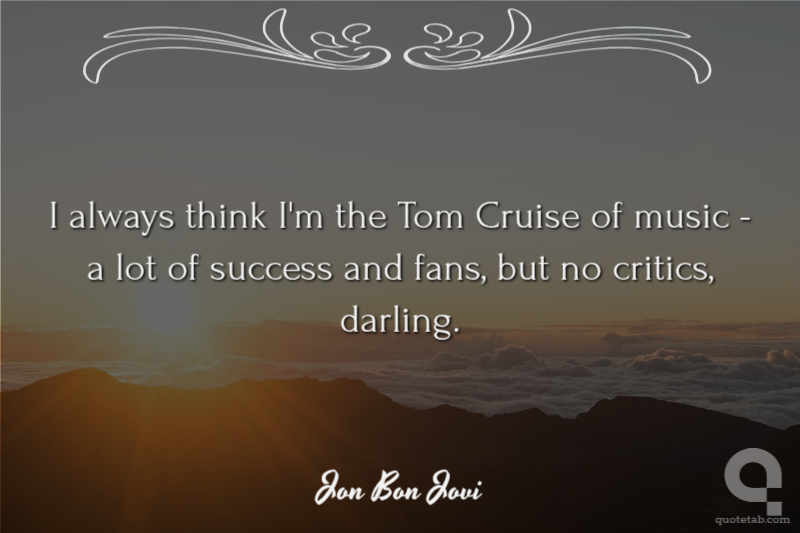 I always think I'm the Tom Cruise of music - a lot of success and fans, but no critics, darling.