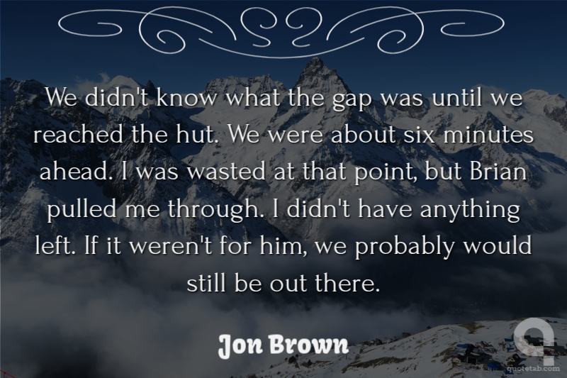 We didn't know what the gap was until we reached the hut. We were about six minutes ahead. I was wasted at that point, but Brian pulled me through. I didn't have anything left. If it weren't for him, we probably would still be out there.